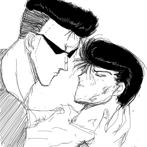 これはね。バトルの末に傷ついて気を失ったゆうすけと戸愚呂弟の図。